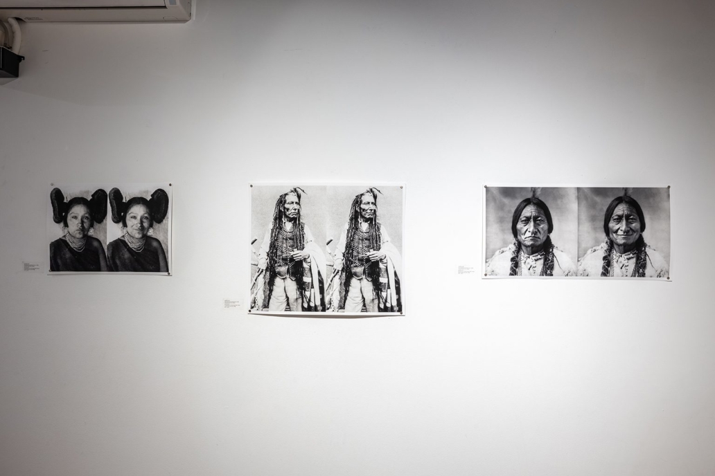 L’objectif de Curtis n’était pas seulement de photographier mais aussi de documenter autant que possible la vie traditionnelle des Autochtones avant que ce mode de vie ne disparaisse. Pour sa part, Amanda Roy connait la réalité sur les réserves et sur le circuit des pow-wow, et ces portraits n’ont jamais vraiment représenté les communautés autochtones. Amanda Roy réajuste ces visages NDN tristes et romantisés en leur apposant des sourires, comme un acte de résistance, en y concentrant l’énergie du rire de la grande tante, ou de l’oncle, pour démontrer combien nous sommes vivants, combien nous avons le sens de l’humour ; ce genre d’humour qui frappe aux portes et réveille tout le quartier.